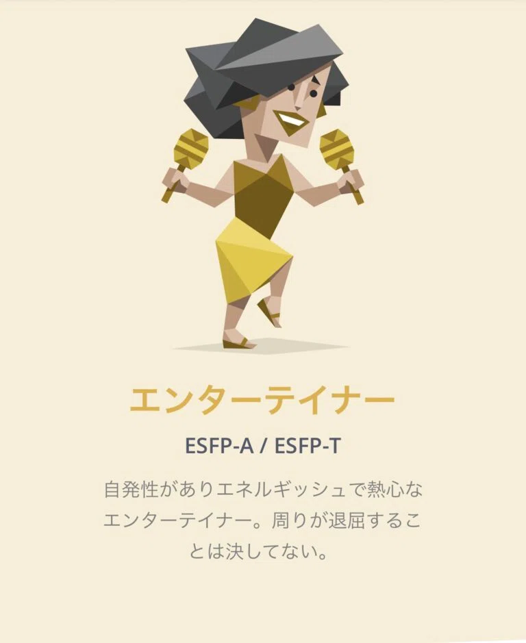 どうやら、ESFP-AとESFP-Tのふたつがあるみたいなのですがそこまでは診断できてません(´・ω・`)💦